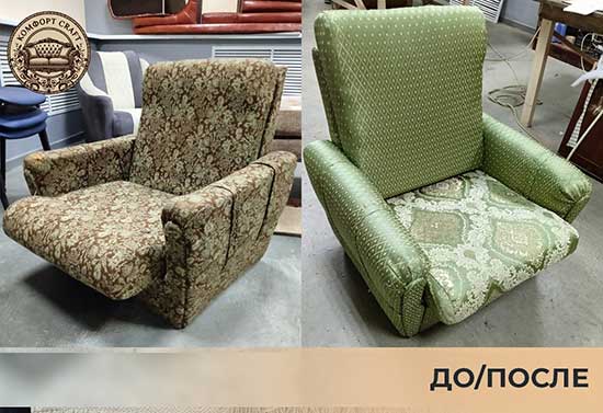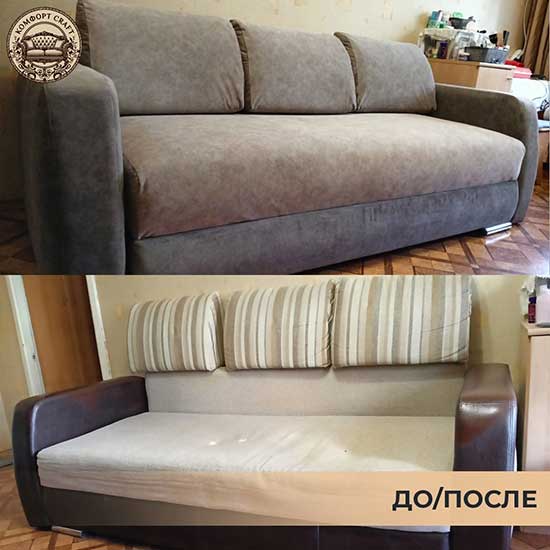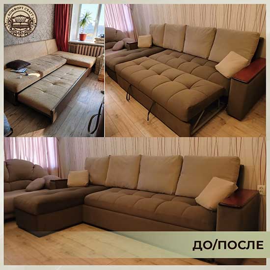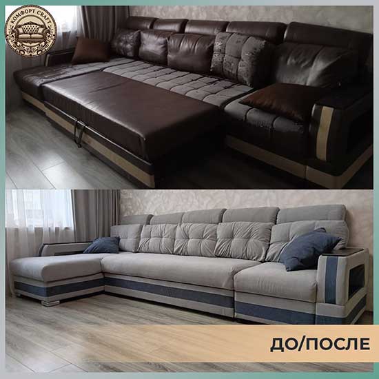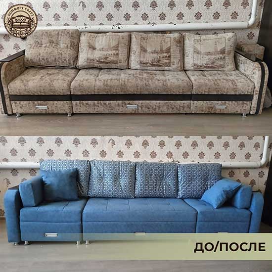 Мы полностью разбираем диван или кресло, при необходимости ремонтируем корпус, меняем или ремонтируем механизмы. Обивку и наполнитель вы сами выбираете исходя из бюджета и особенностей эксплуатации (защита от когтей домашних животных, легко чистящаяся и т.п.)